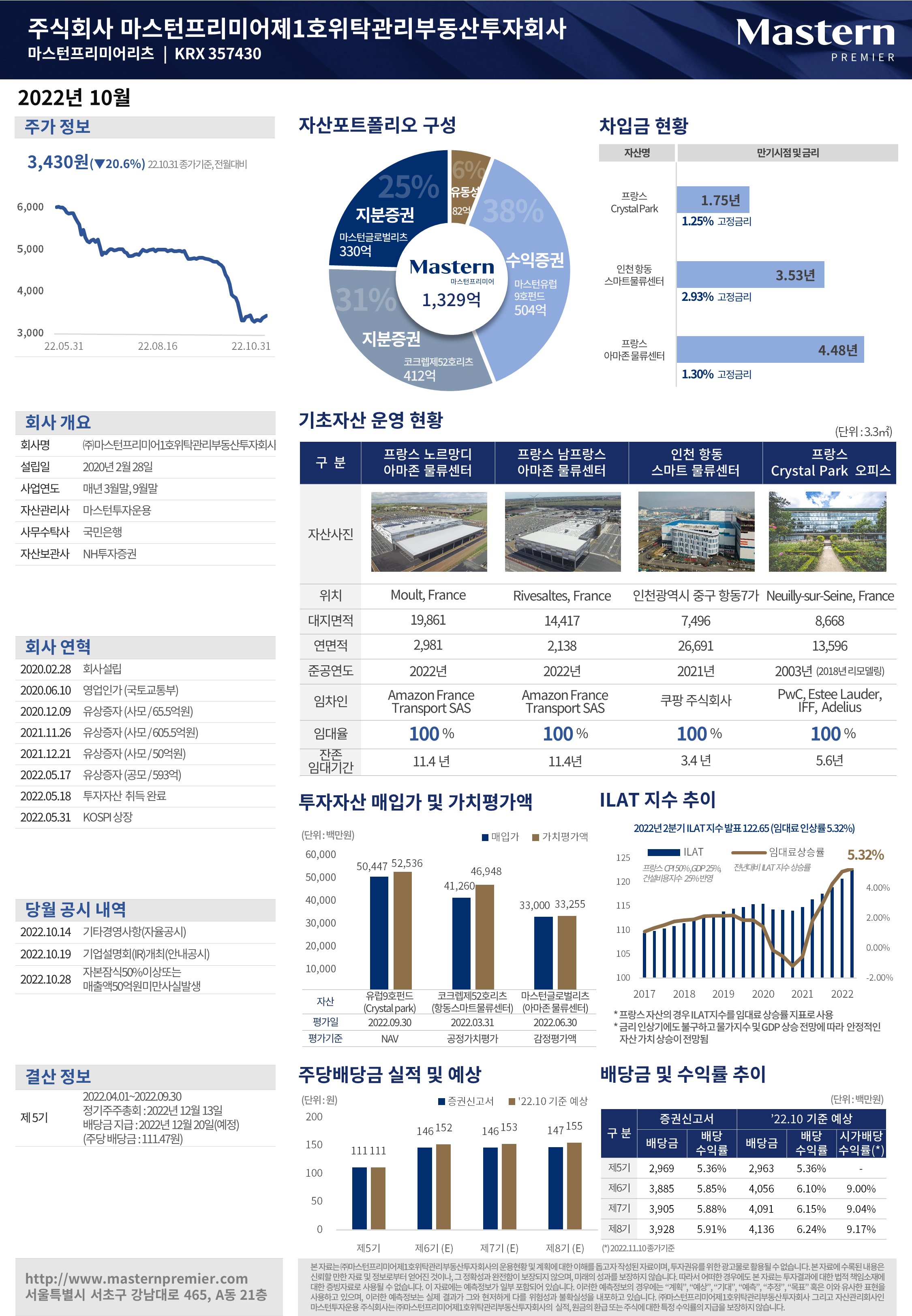 마스턴프리미어리츠의 2022년 10월 월간보고서입니다.